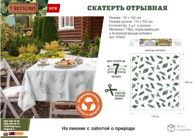 BOYSCOUT Скатерть для пикника 110х140 см отрывная, биоразлагаемая, 5 шт в рулоне