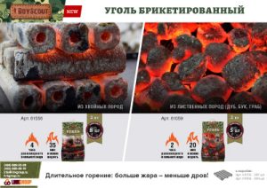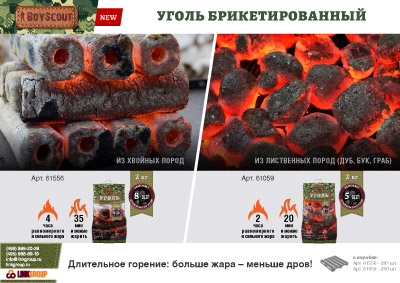 С помощью различных принадлежностей для розжига Boyscout растопка гриля, котла, печи, бани, камина станет простым и безопасным делом. Брикетированный уголь, топливные брикеты и роллы для розжига, поленья длительного горения – это удобные и практичные средства для дачников, туристов, рыбаков и охотников - всех кому нужно быстро и без проблем развести огонь. Какое бы средство для розжига Вы ни выбрали, оно станет Вашим верным помощником в организации отдыха на природе. Заменяет 8 кг. обычного угля.
