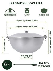 Комплектность: Казан (объем 6 л), крышка.