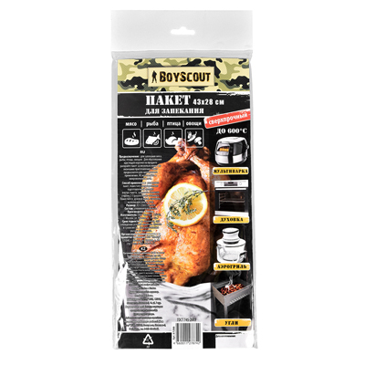Для запекания мяса, рыбы, птицы,овощей. пакет предназначен для однократного применения.
