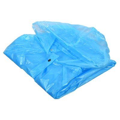 Плащ-дождевик из прочного полиэтилена, оснащенный удобными кнопками, используется для защиты от дождя.