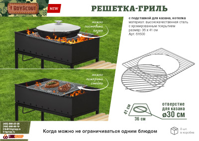 Решетка-гриль с подставкой для казана, котелка, 41х36 см