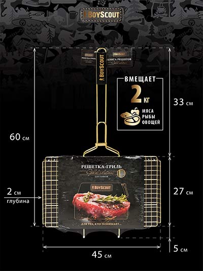 Решётка-гриль для стейков GOLD, 60(+5) х45х27х2 см
