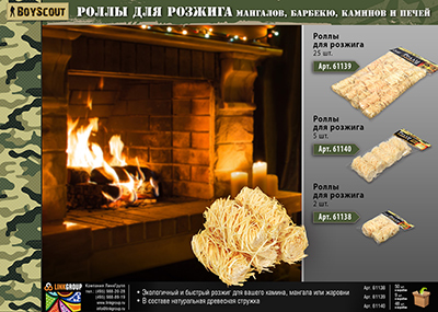 Описание: С помощью различных принадлежностей для розжига Boyscout растопка гриля, котла, печи, бани, камина станет простым и безопасным делом. Брикетированный уголь, топливные брикеты и роллы для розжига, поленья длительного горения – это удобные и практичные средства для дачников, туристов, рыбаков и охотников - всех кому нужно быстро и без проблем развести огонь. Какое бы средство для розжига Вы ни выбрали, оно станет Вашим верным помощником в организации отдыха на природе.