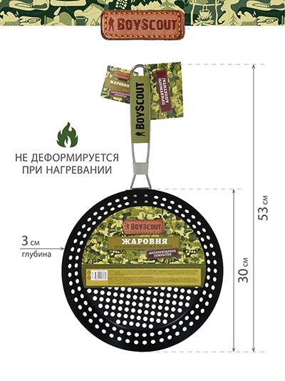 | Материал: | углеродистая сталь с антипригарным покрытием, деревянная ручка. |