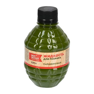 Не ломайте голову о том, как легко и без хлопот затопить камин или разжечь угли для мангала. Жидкость для розжига поможет быстро развести огонь в походе, на даче или просто на природе. Парафиновая жидкость для розжига BOYSCOUT в оригинальной упаковке в виде гранаты-лимонки изготавливается на основе жидких парафинов по специальной технологии, не имеет запаха, разгорается медленным спокойным пламенем. Горит долго, без копоти.